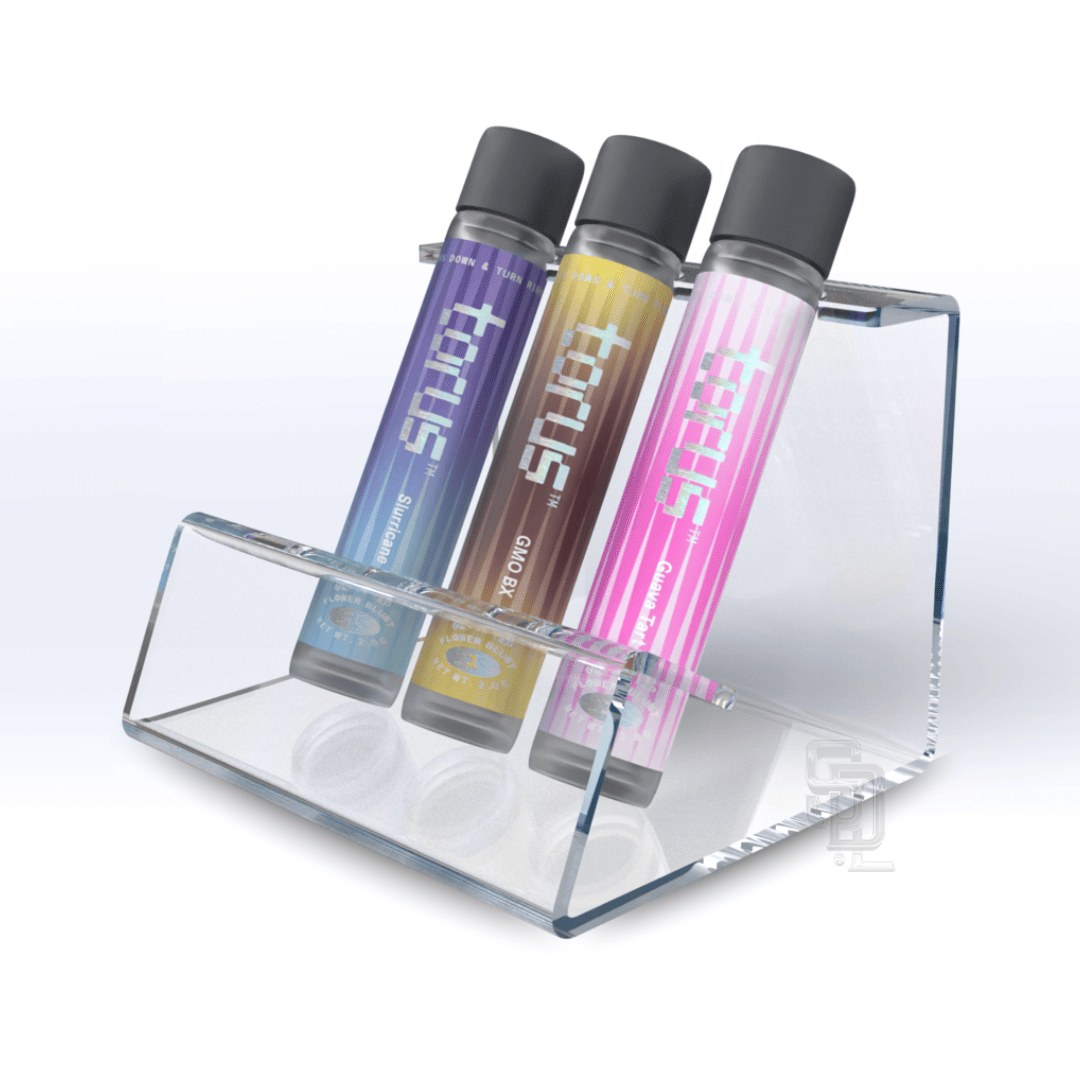 Our 03-Tube Pop Display offers a convenient and attractive way for smoke shops and dispensaries to display their pre-roll category products. Designed with convenience and aesthetics in mind, our 3-Tube Prop display is the premier way to showcase and display retail products packaged in tubes.