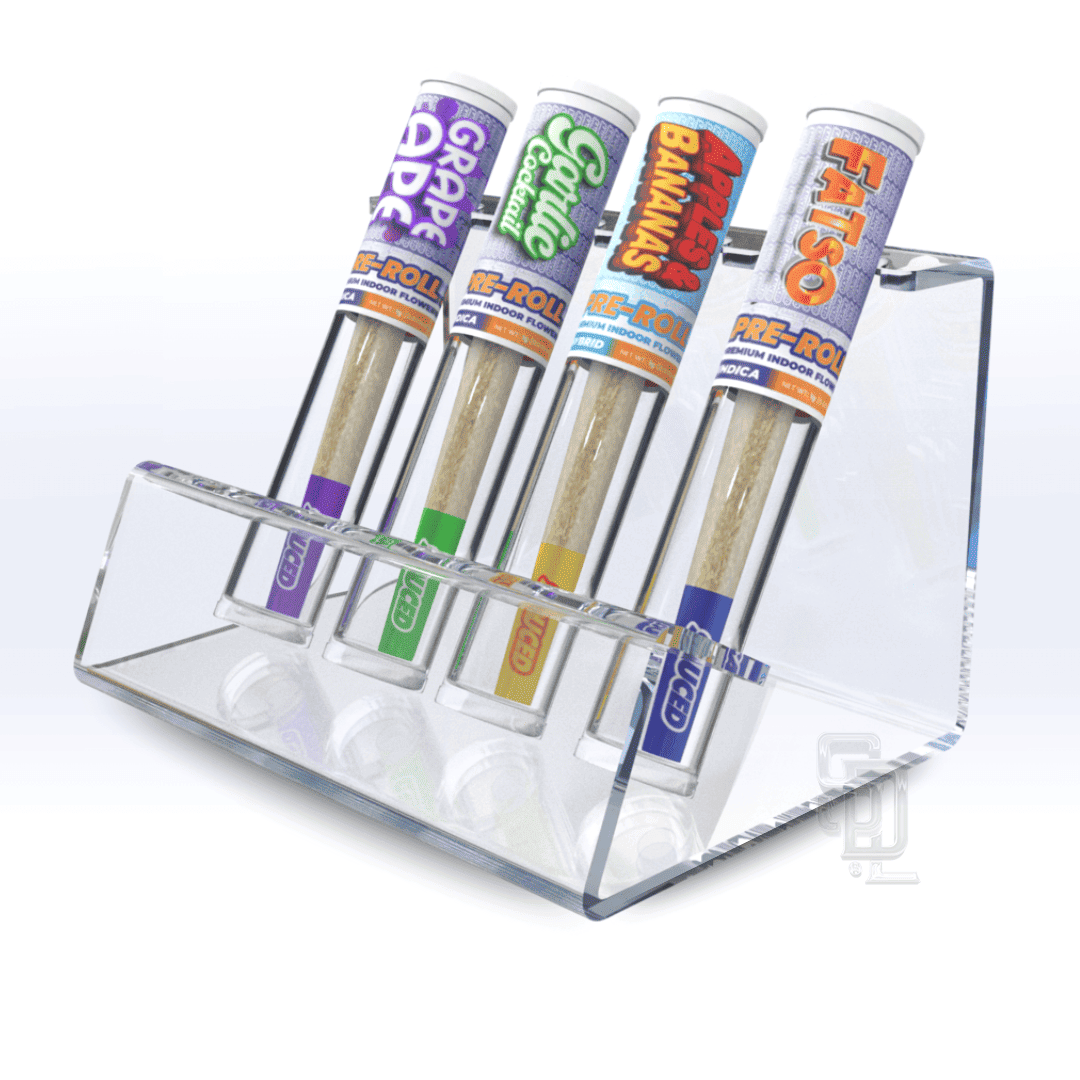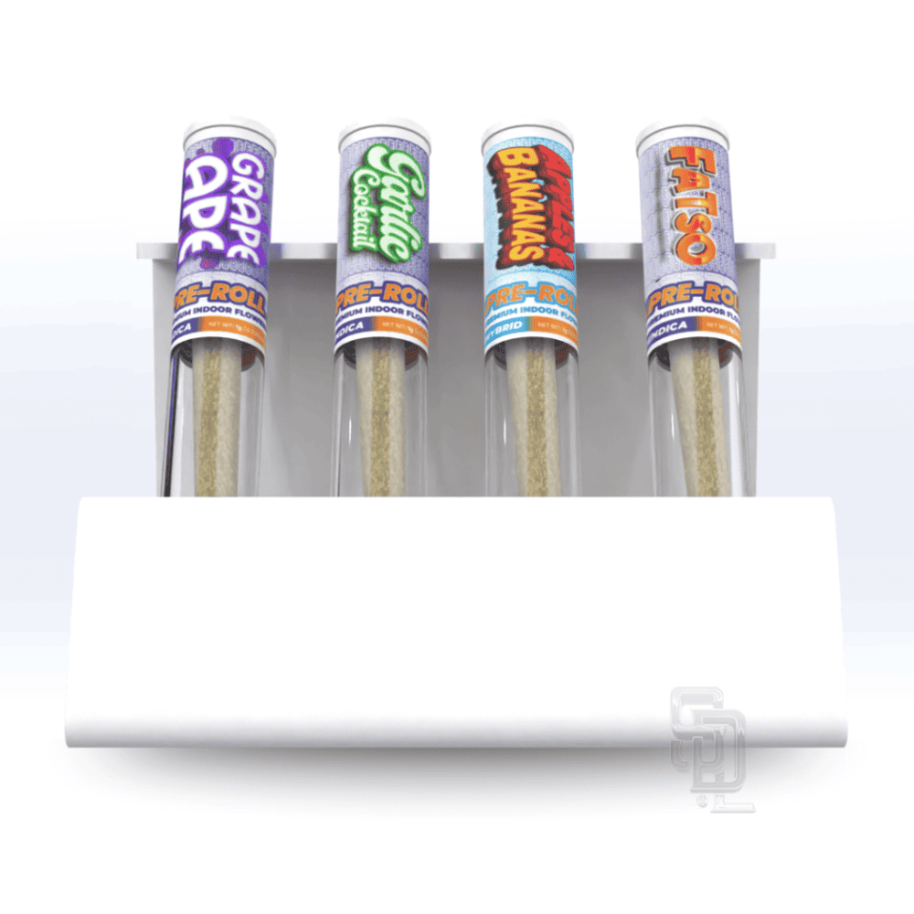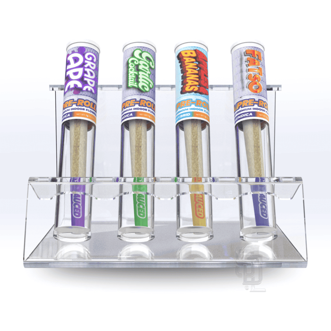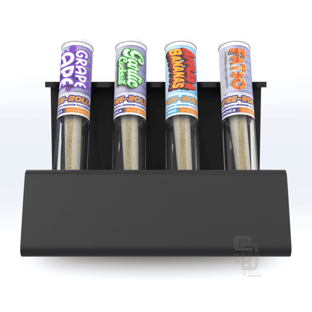 Our 4-Tube Prop offers a convenient and attractive way for smoke shops and dispensaries to display their pre-roll category products. Designed with convenience and aesthetics in mind, our 4-Tube Prop display is the premier way to showcase and display retail products packaged in tubes.