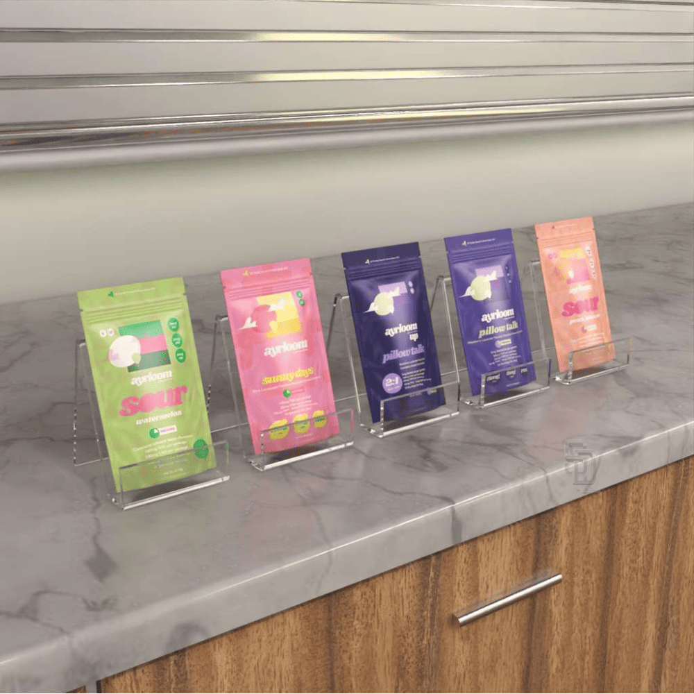 Designed to maximize versatility, while taking up minimal space, the acrylic prop display works great as displays on countertops, near any point of purchase, display cases, shelves and more.