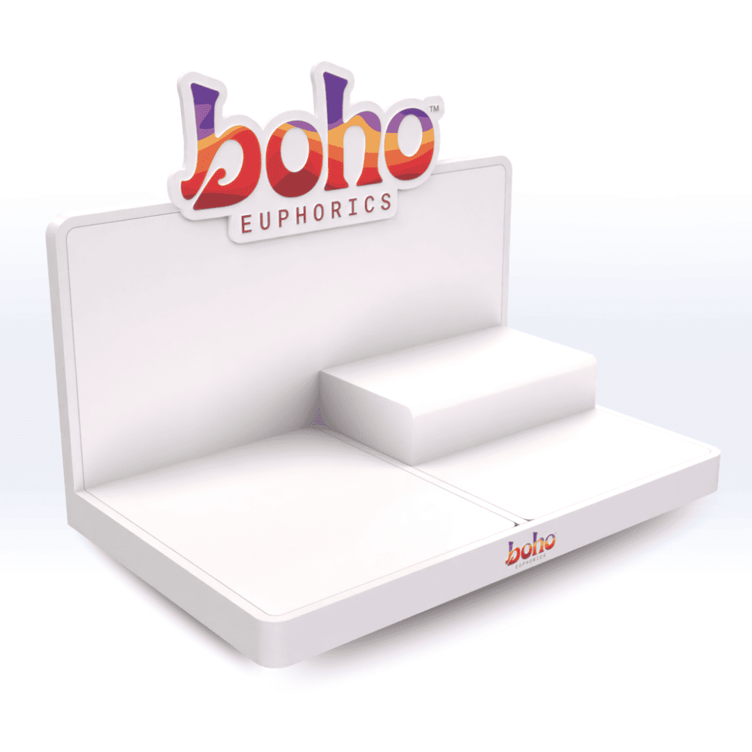 Crafted from durable 5mm thick satin polished acrylic. With three interchangeable product tray components to choose from, this display is fully customizable to suit your needs. Select from our range of 8 product trays and display your brand logo on the backside panel.