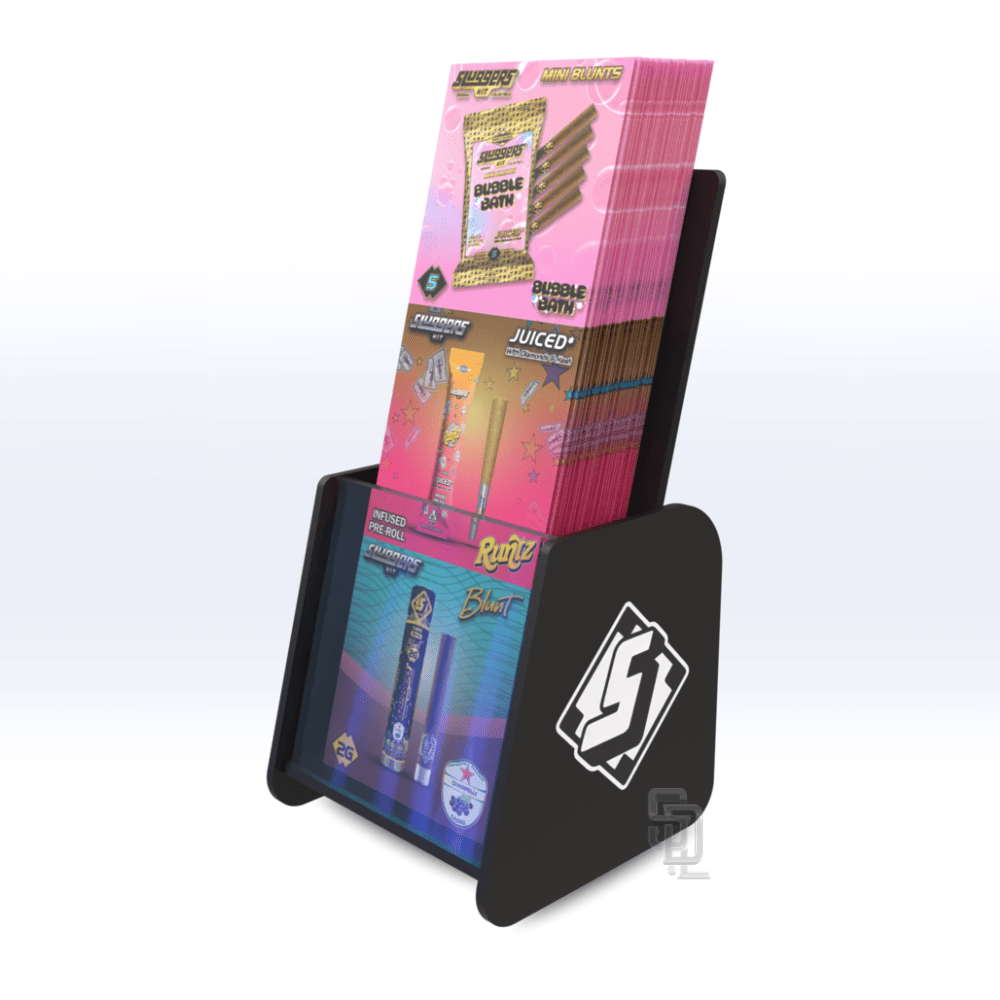 Our custom acrylic product information flyer stand can be branded with your logo, brand colors and sized to fit your specific product flyer.