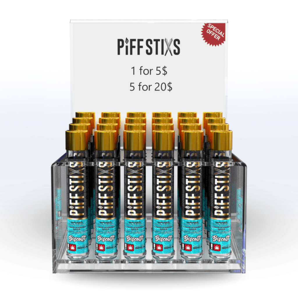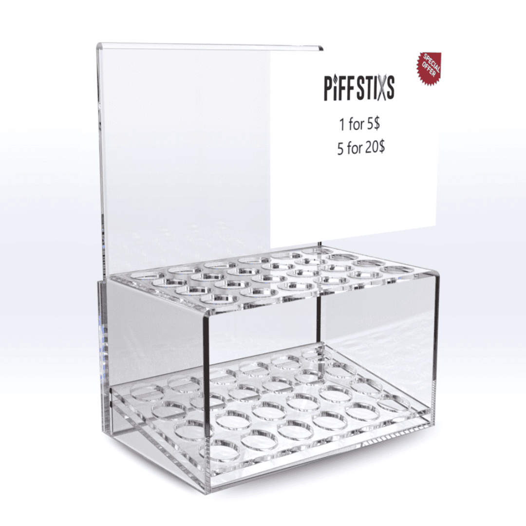 Efficiently organize your countertops and display cases with our innovative 24-tube acrylic Pre-roll showcase display. Perfect for Pre-roll tubes up to 24mm in diameter, this display includes an A5 sized product information sleeve for customizable marketing designs. Simply slide your design into the product information envelope for a professional touch.