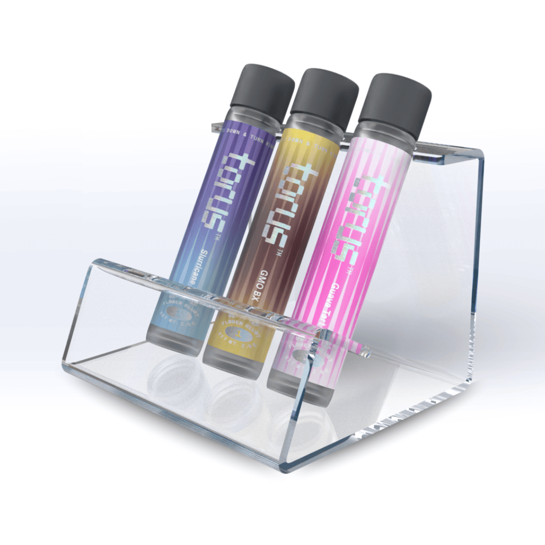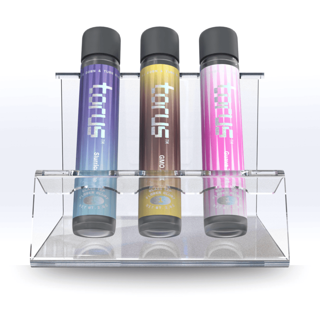 Our 3-Tube Pop Display offers a convenient and attractive way for smoke shops and dispensaries to display their pre-roll category products. Designed with convenience and aesthetics in mind, our 3-Tube Prop display is the premier way to showcase and display retail products packaged in tubes.