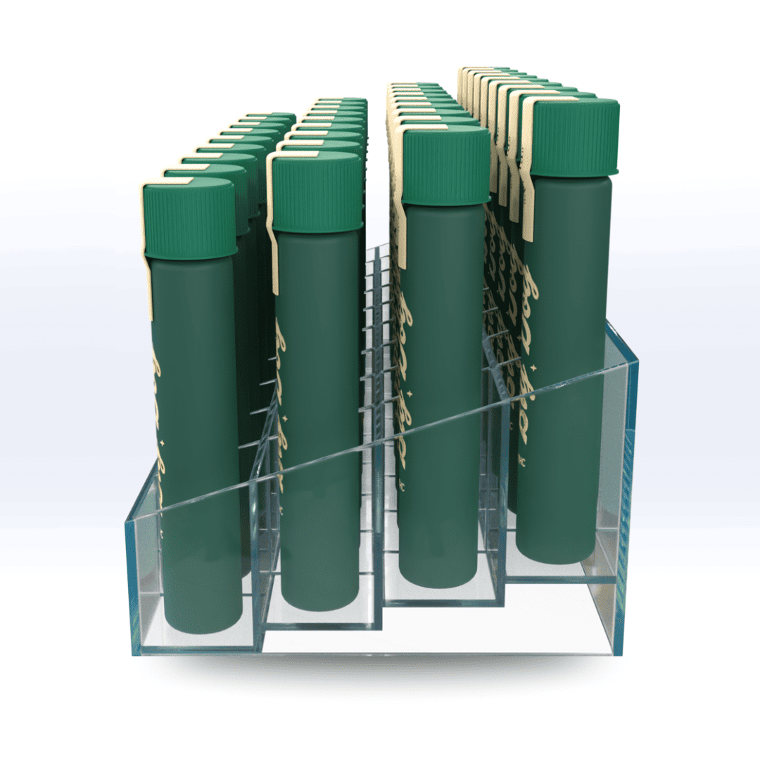 Featuring four total rows of eight tubes, the 36-tube pre-roll display is the perfect POP Pre-roll display for brands, smoke shops, and dispensaries.