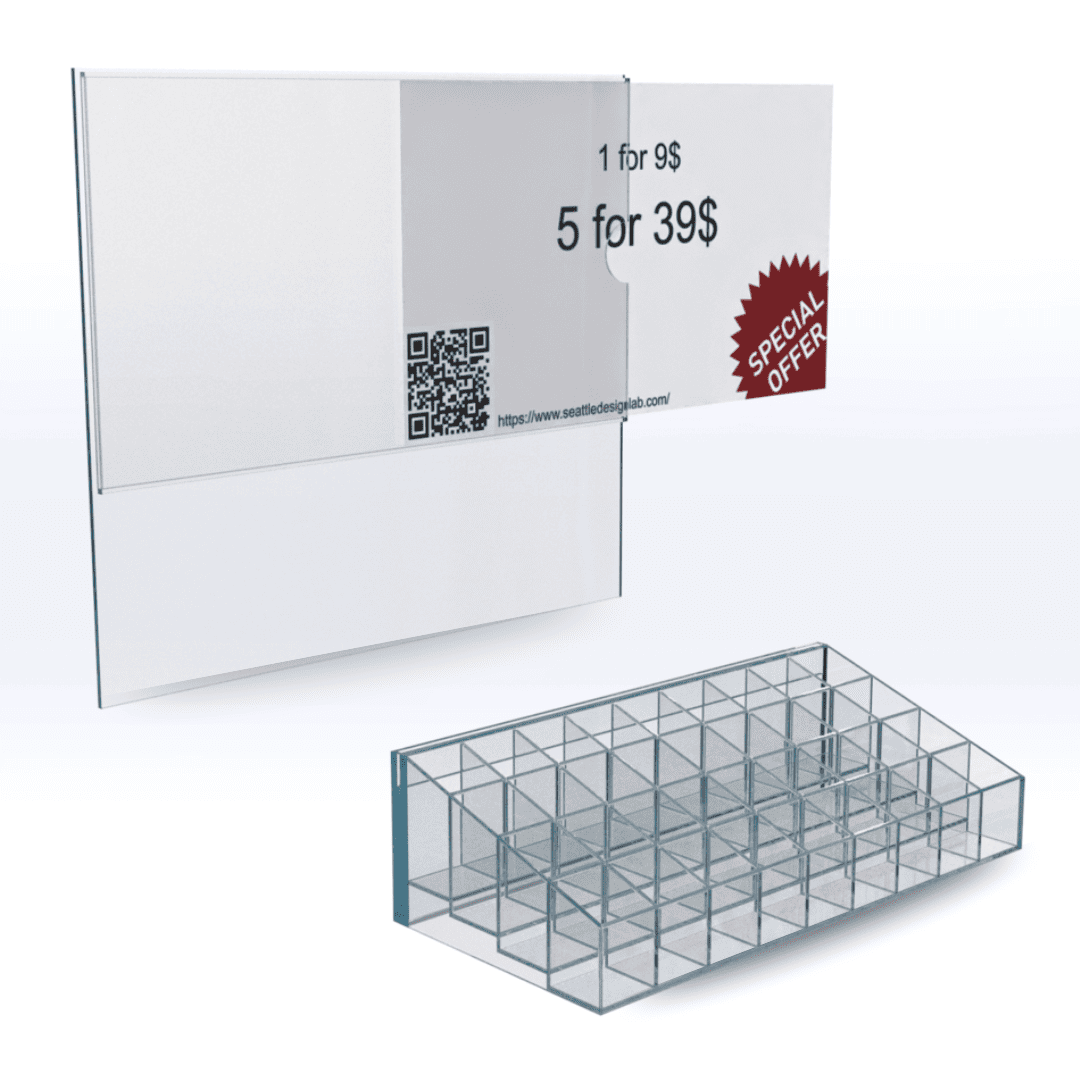 On the backside elevated above the top of the tubes is a 5x7" information holder. Simply slide your design into the product information envelope for a professional touch.