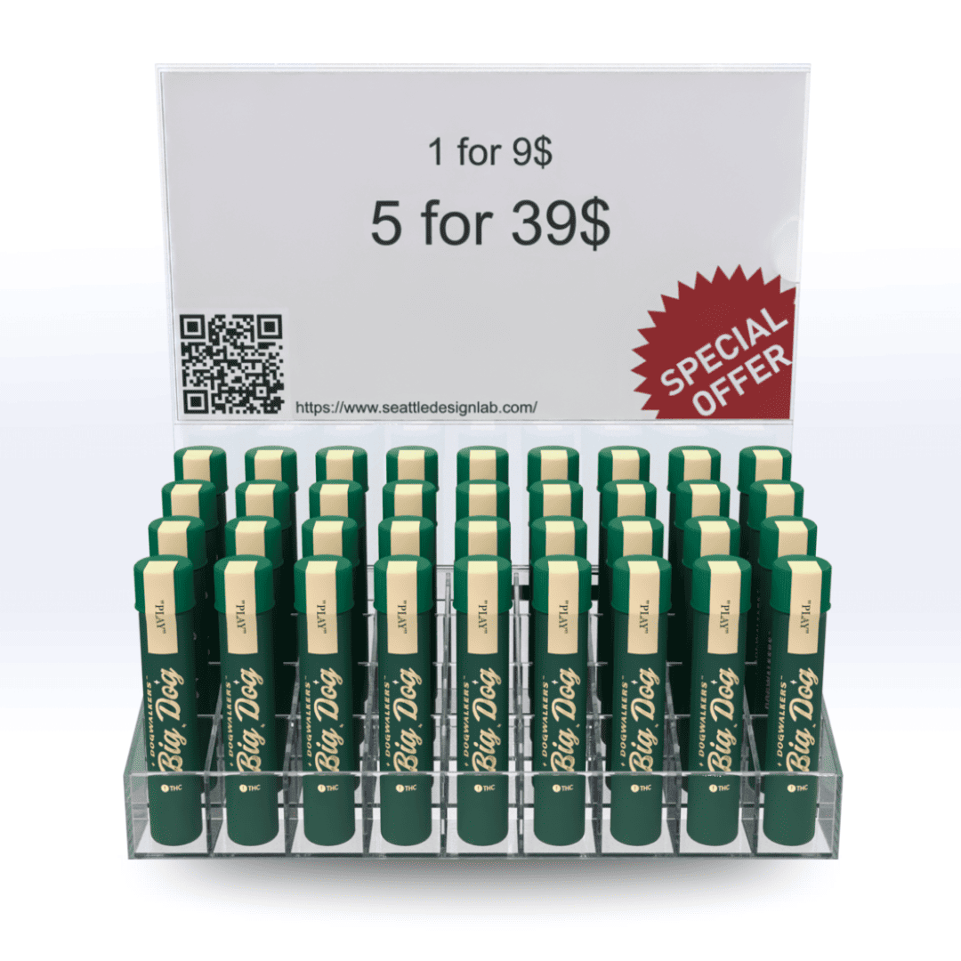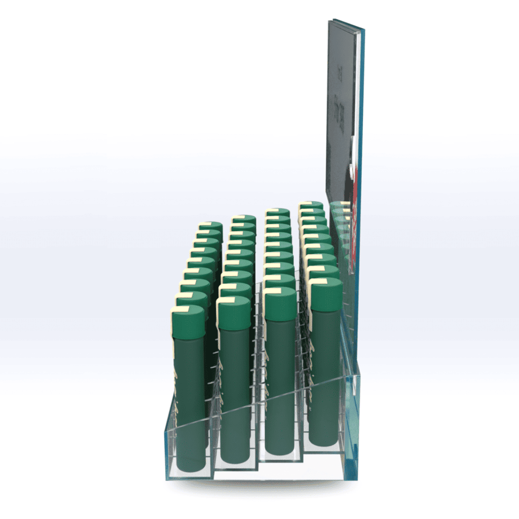 Efficiently organize your countertops and display cases with our innovative 36-tube acrylic Pre-roll showcase display. Perfect for products packaged in tubes up to 24mm in diameter.