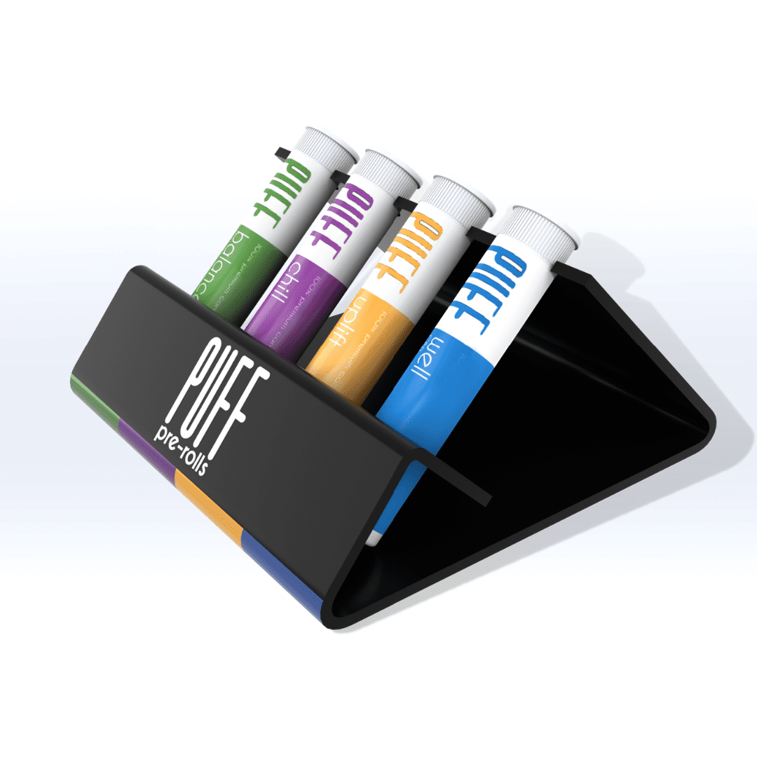 Our Acrylic 4-Tube Prop Display was specifically designed for dispensary and smoke shop settings. Capable of fitting most pre-roll tube sizes, this Pre-roll point-of-purchase display can comes in most colors and we can easily add your logo or artwork.