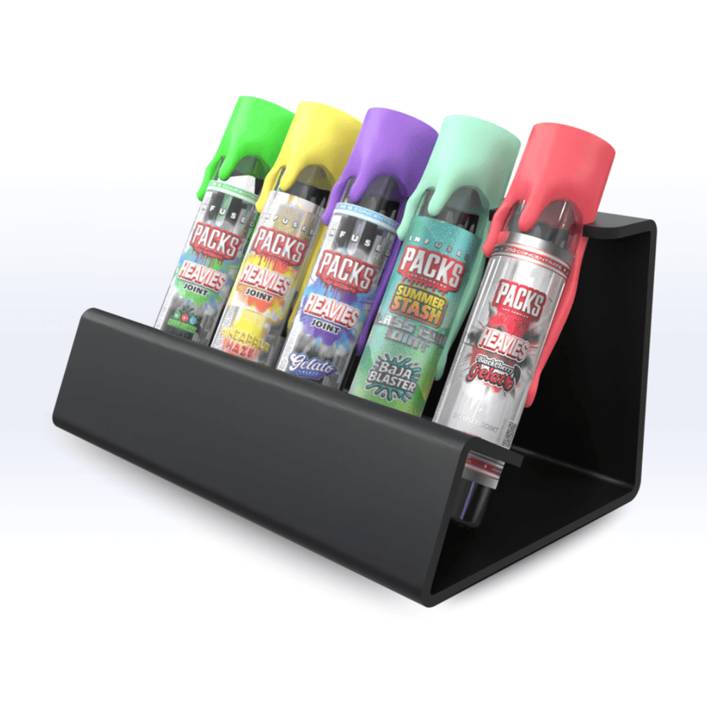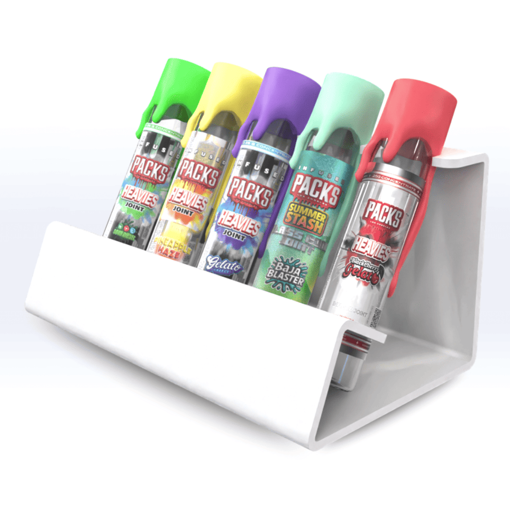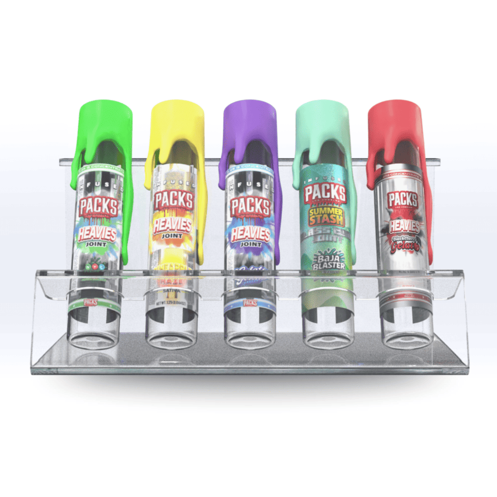Our 5-Tube Pop Display offers a convenient and attractive way for smoke shops and dispensaries to display their pre-roll category products. Designed with convenience and aesthetics in mind, our 5-Tube Prop display is the premier way to showcase and display retail products packaged in tubes.