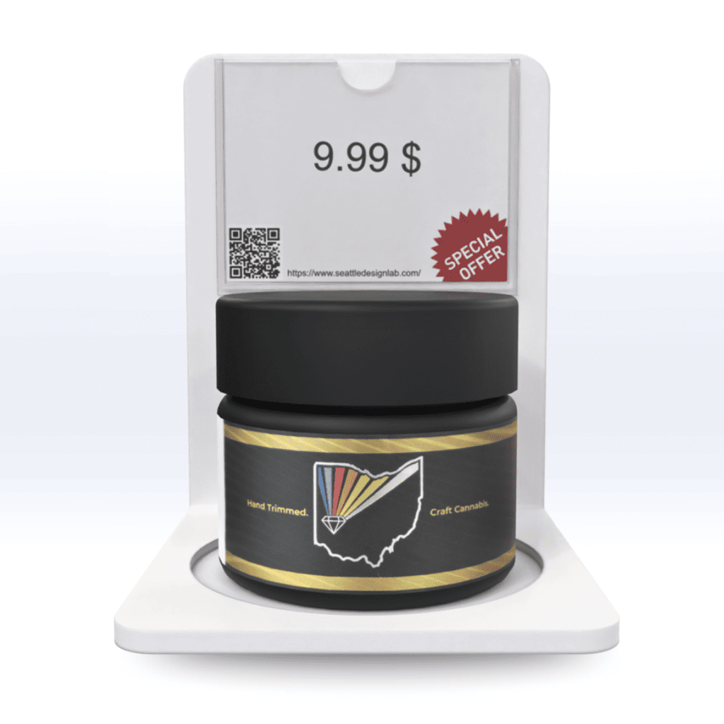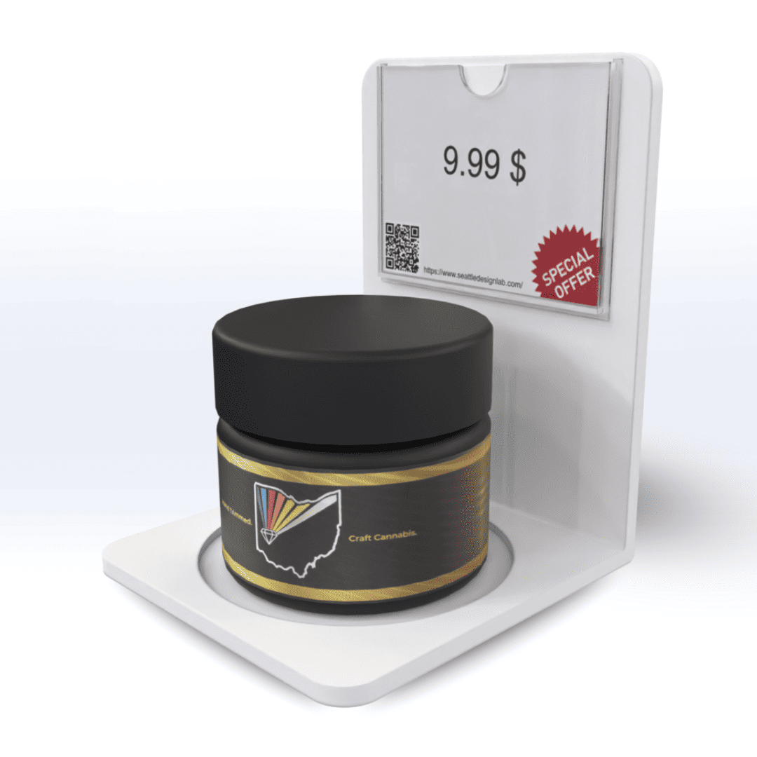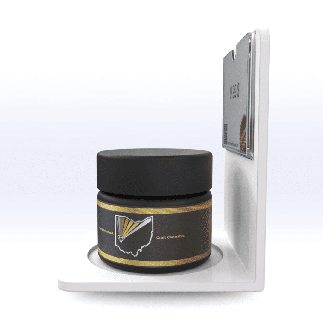 Our Flower Jar Showcase Display is the perfect addition to any dispensary or smoke shop, featuring one 3" diameter flower jar tray and product information sleeve. Experience premium store merchandising and elevate your brand with this unique product display.