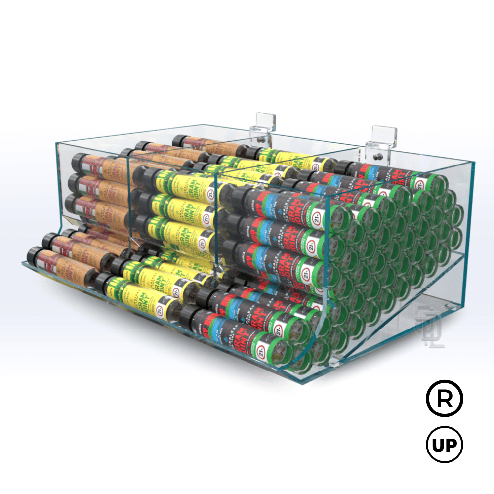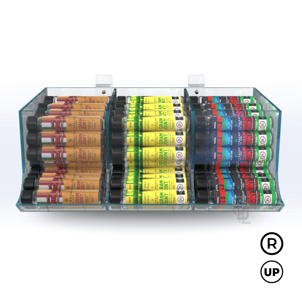 The Acrylic Model S-Trio Display is our #1 selling Model S Display x3... Affording flexibility to use on flat surfaces behind point of purchase counters, standard slat-walls or raised grid-wall.