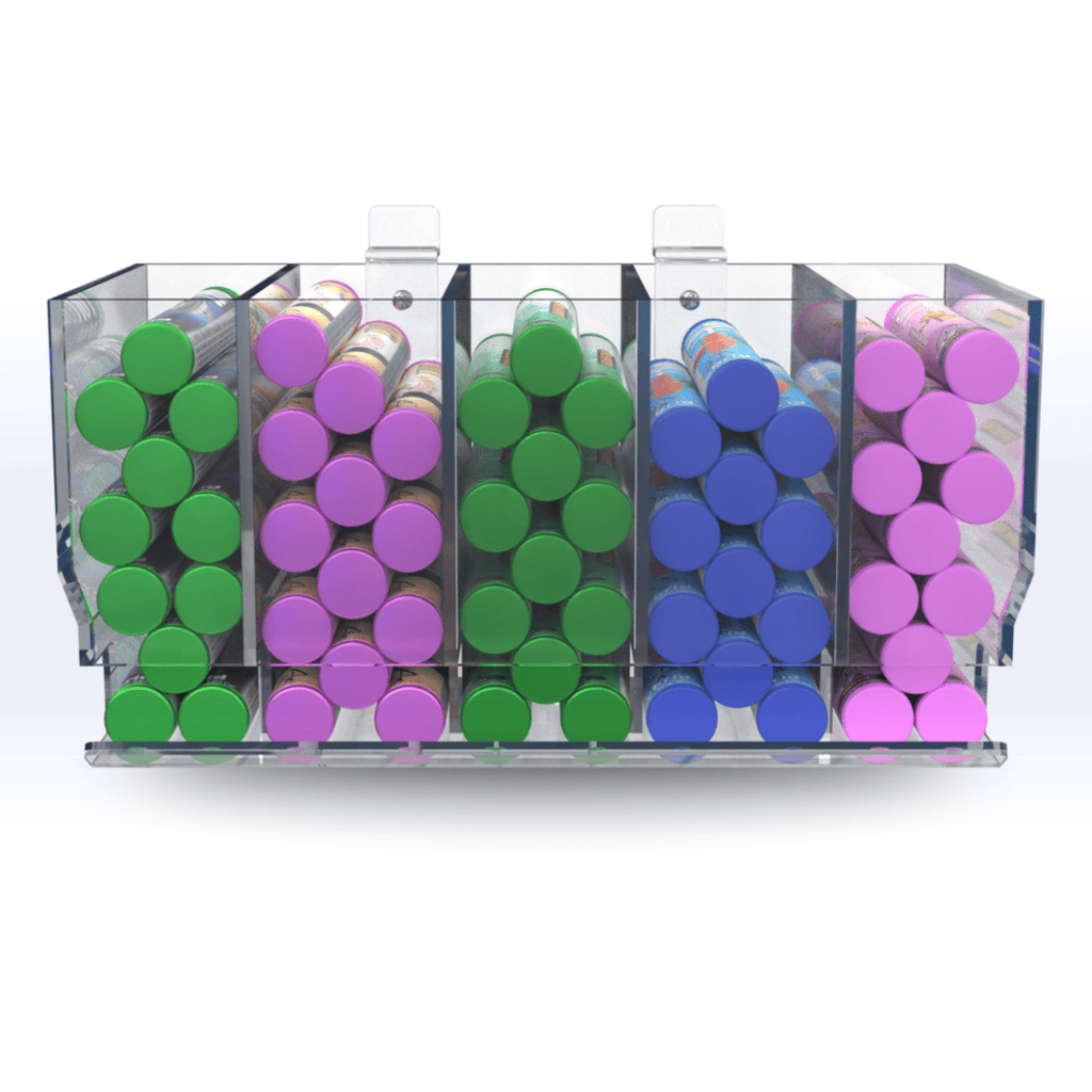 Made from premium 5mm clear acrylic, the Model 4 acrylic display dispenser holds ~25 tubes per column, or ~120 tubes each.