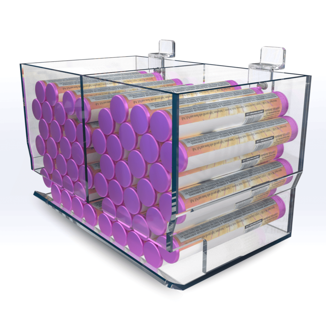 Our Custom Model V-Duo Acrylic Display is a stackable, space-saving option for retails to use near the point of sale. Measuring 8.5" W, 6" D, 5.75" H, the V-Duo was designed with versatility in mind and built for almost any space, and especially near the point-of-sale visibility.
