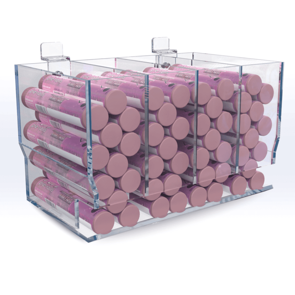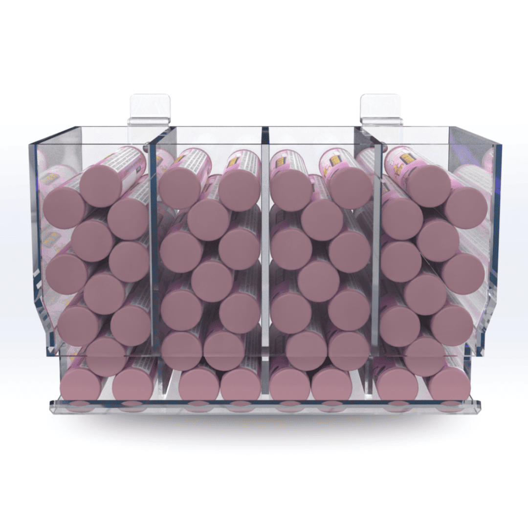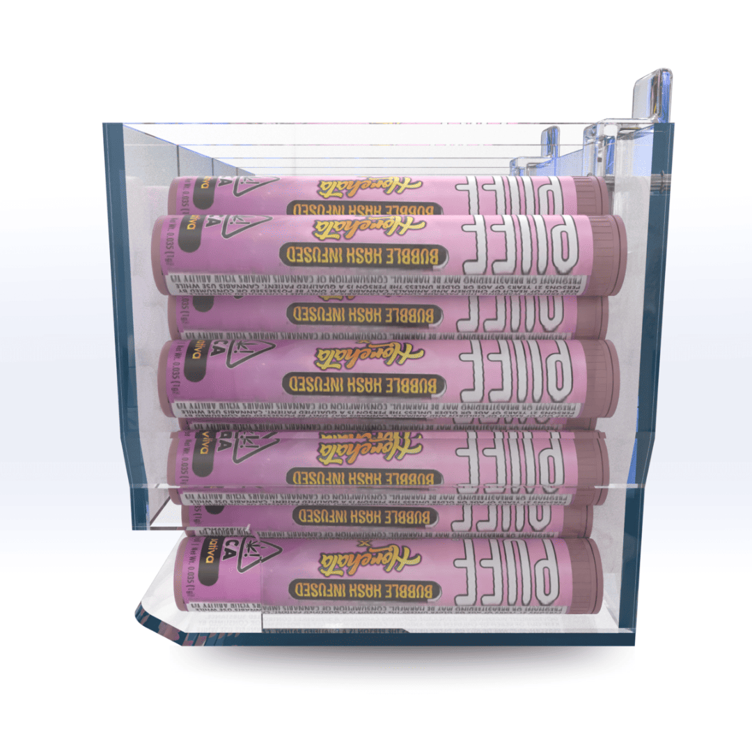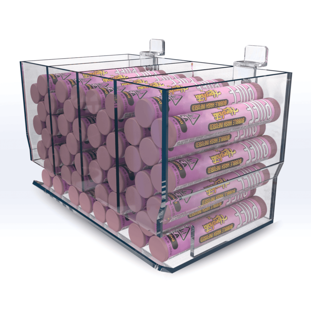 Our Acrylic Model V4 Pre-roll Gravity Display dispenser is the best and most effective merchandising tool for pre-rolls packaged in tubes.