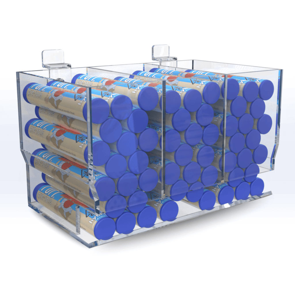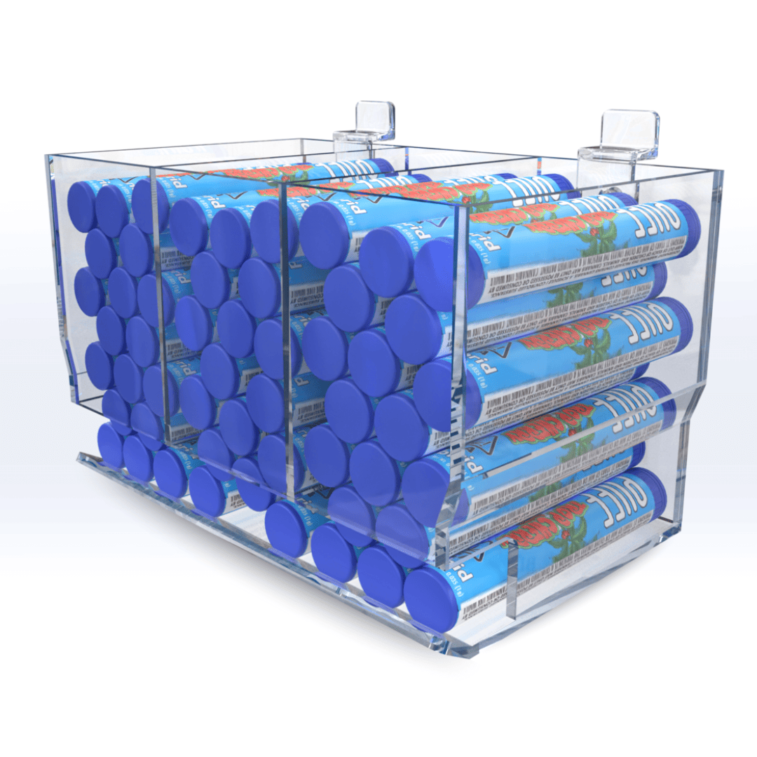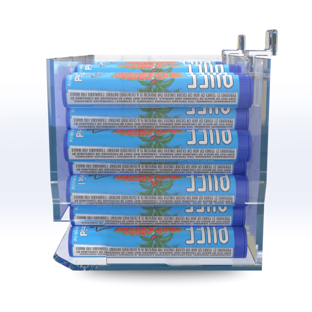 The New Acrylic Model III Pre-roll Display is our newest and more compact pre-roll dispenser yet! Designed for display cases, wall shelves or slat-walls, the new Model V-III Pre-roll dispenser features three Pre-roll tubes Dispensers that hold approximately 20-25 116mm tubes each.