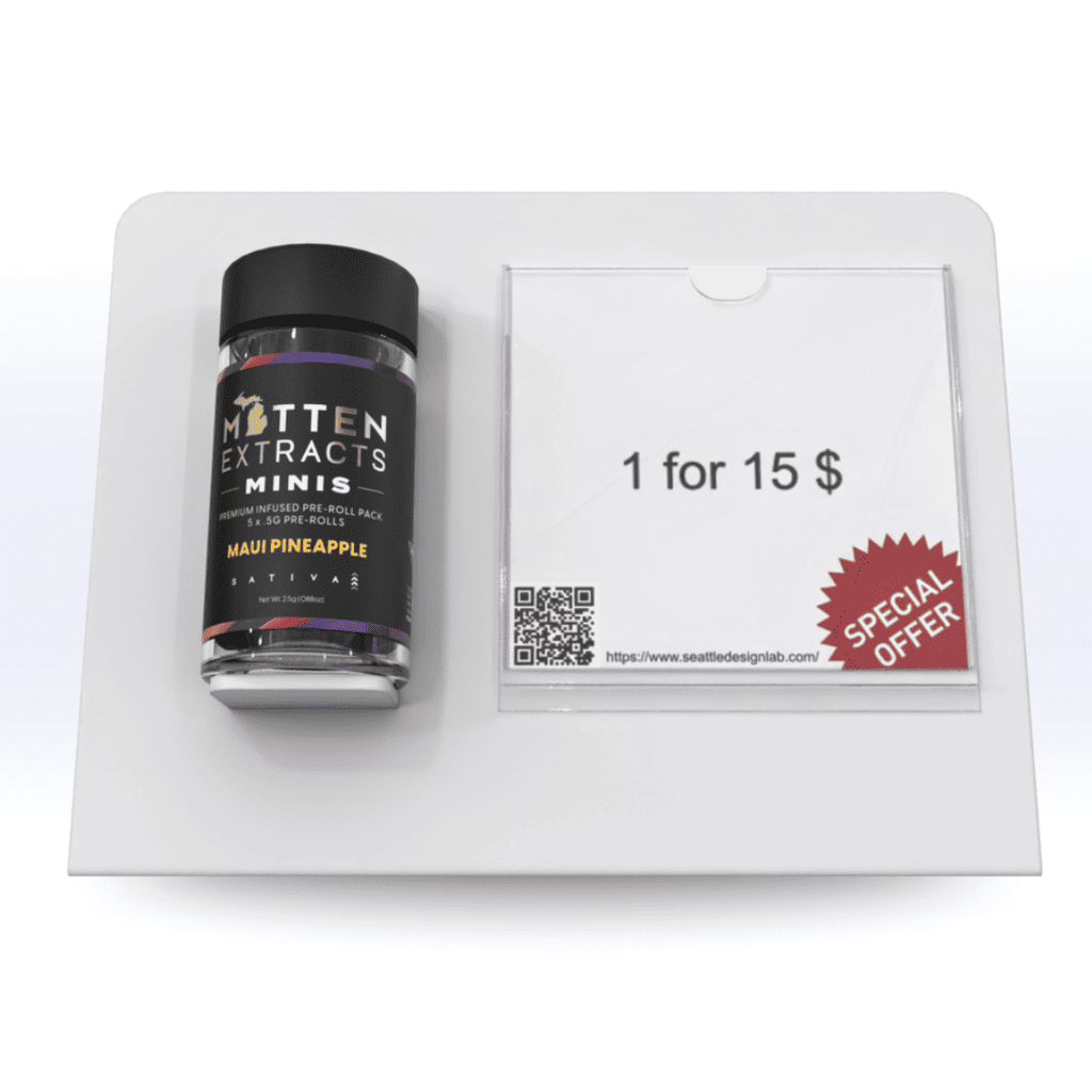 Introducing our top-of-the-line acrylic flower jar showcase prop, ideal for showcasing products in retail stores, dispensaries, and smoke shops. Made from durable 5mm thick acrylic, this Jar Showcase is designed to support jars up to 4" Diameter and comes with a product information sleeve.