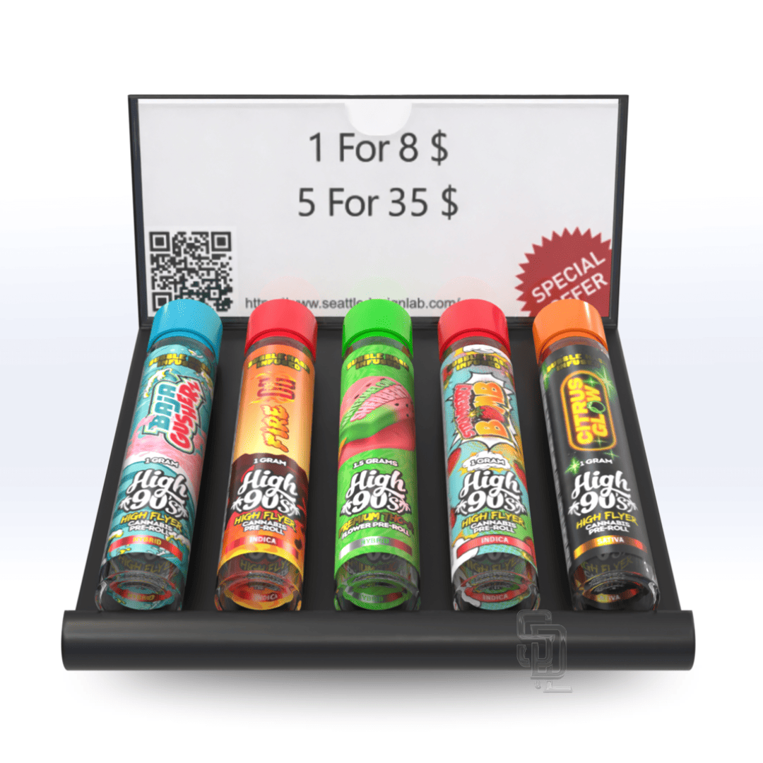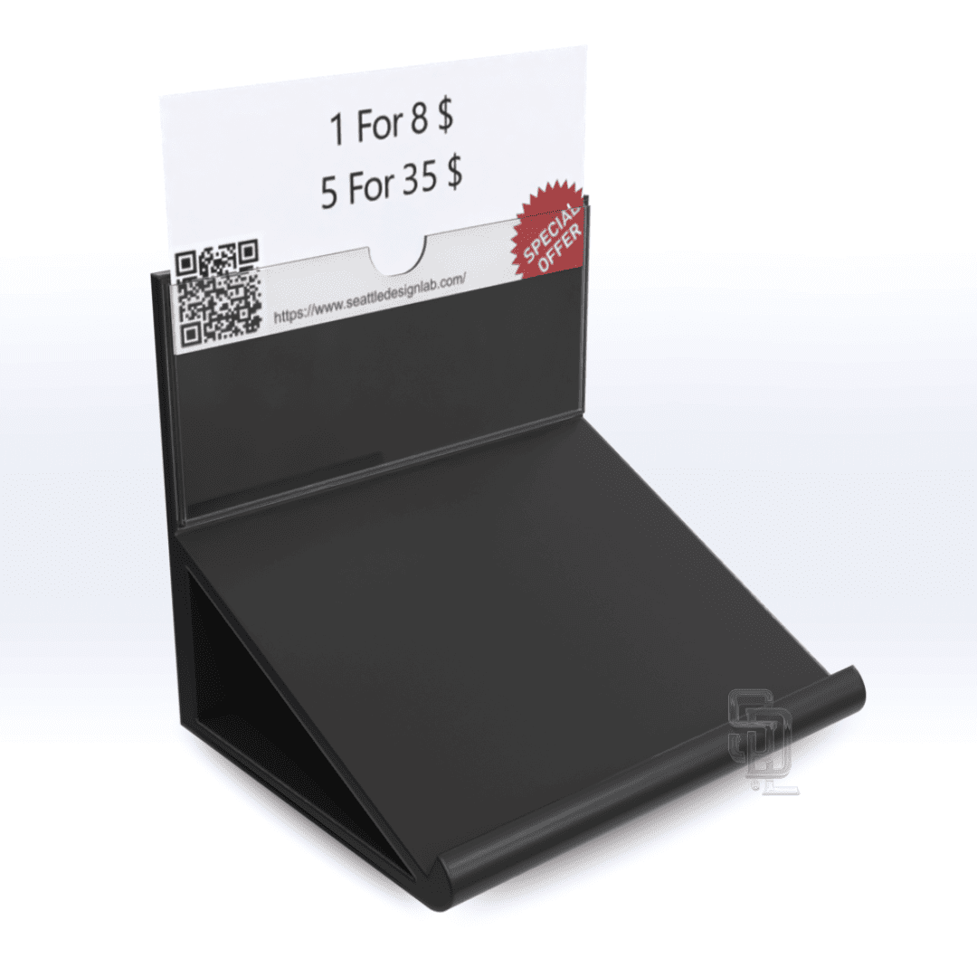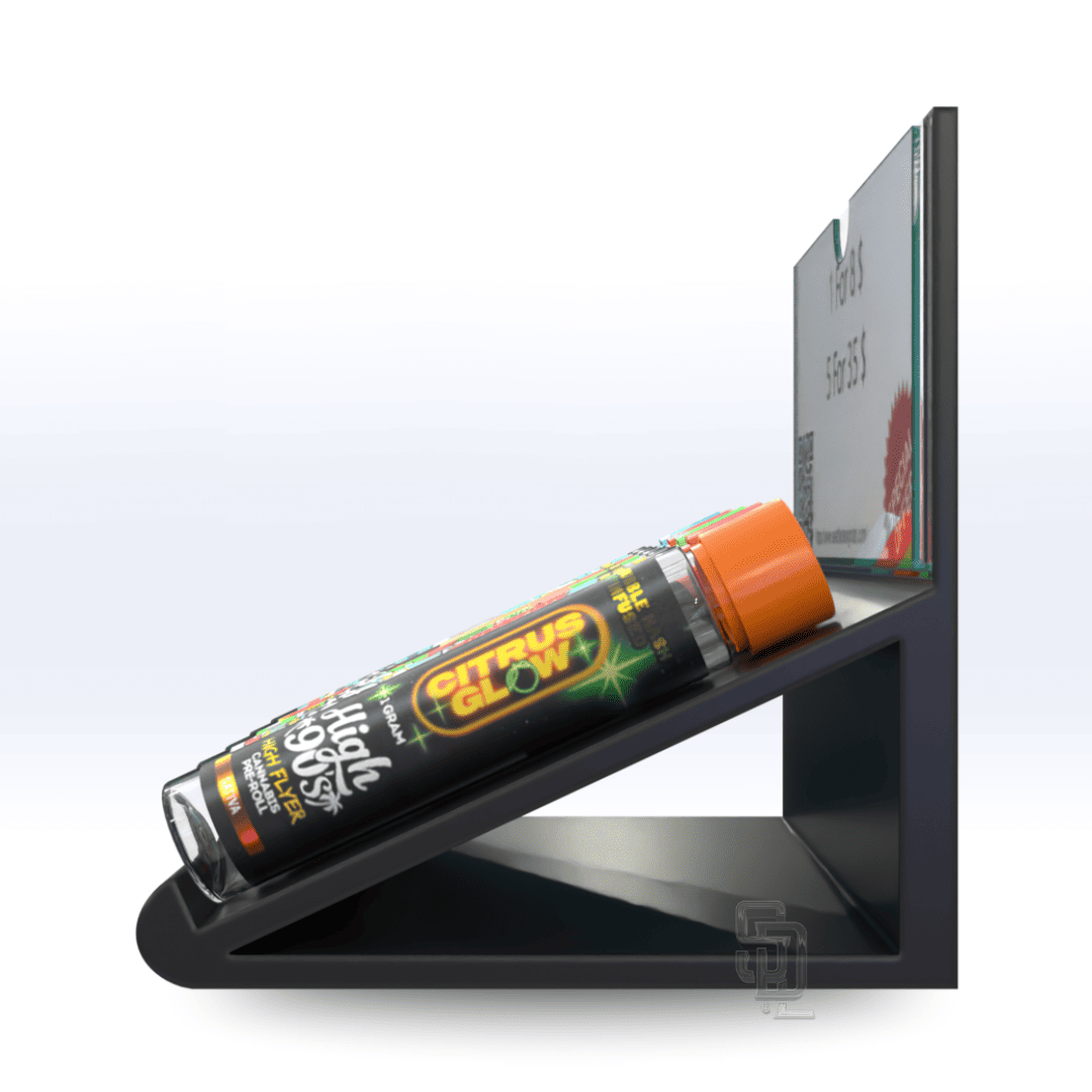 Our Acrylic Showcase Prop Display is perfect for displaying any assortment of retail products in compact, unique retail settings. Prominently feature products like tubes, Jars, Tins, or Mylars bags with corresponding product information or pricing within the backside panels clear information sleeve.