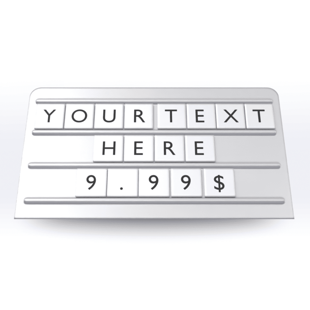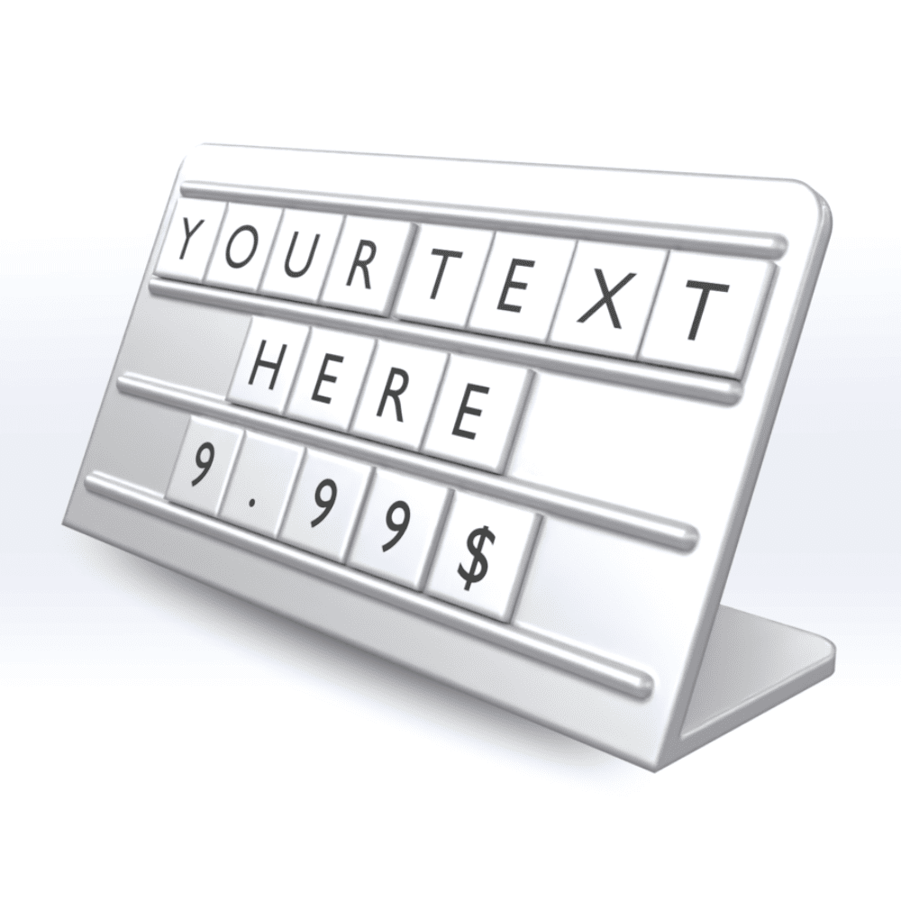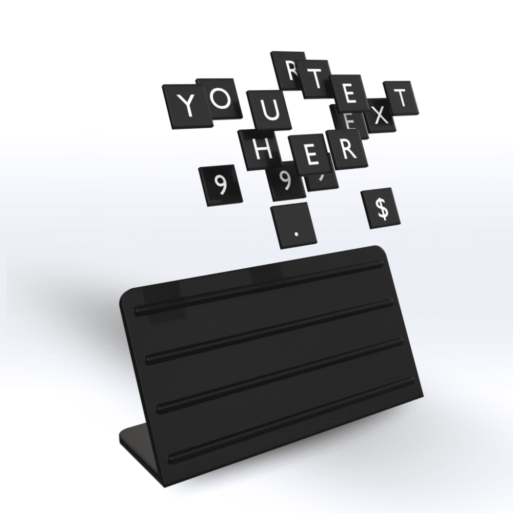 Our new and improved Magnetic Counter Signs come 12 to a pack, and measure 3.5" Wide x 1.75" Tall. Made from magnetic aluminum alloy, our new Magnetic Metal signs include two letter rails assisting signage letters to stay up and straight.