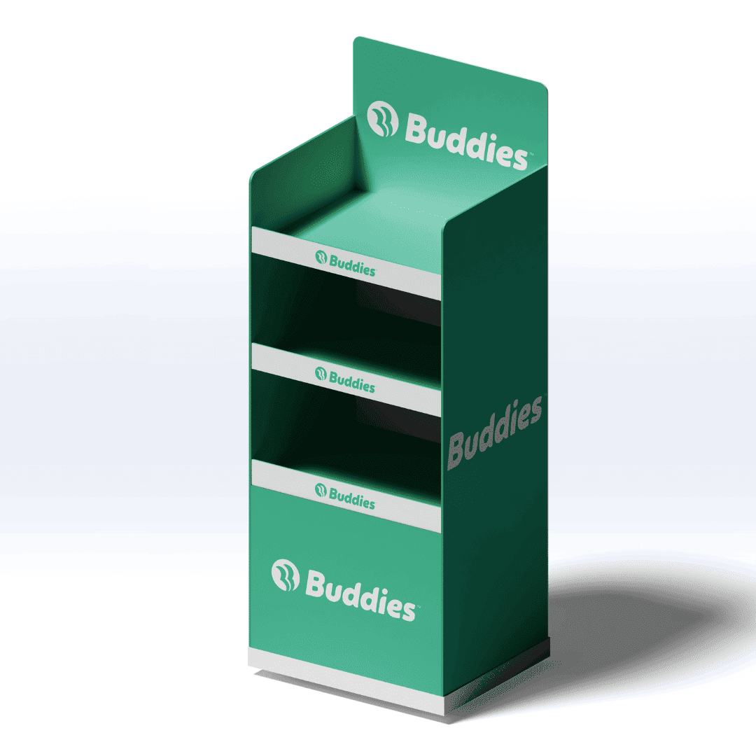 Our Freestanding Corrugated Box Promo Display is made from premium 6mm corrugated box, custom designed to order and an innovative solution to present your retail store products. With an easy-to-use setup, our pre-roll box displays are the perfect addition to any retail store, trade show event, and popup store.