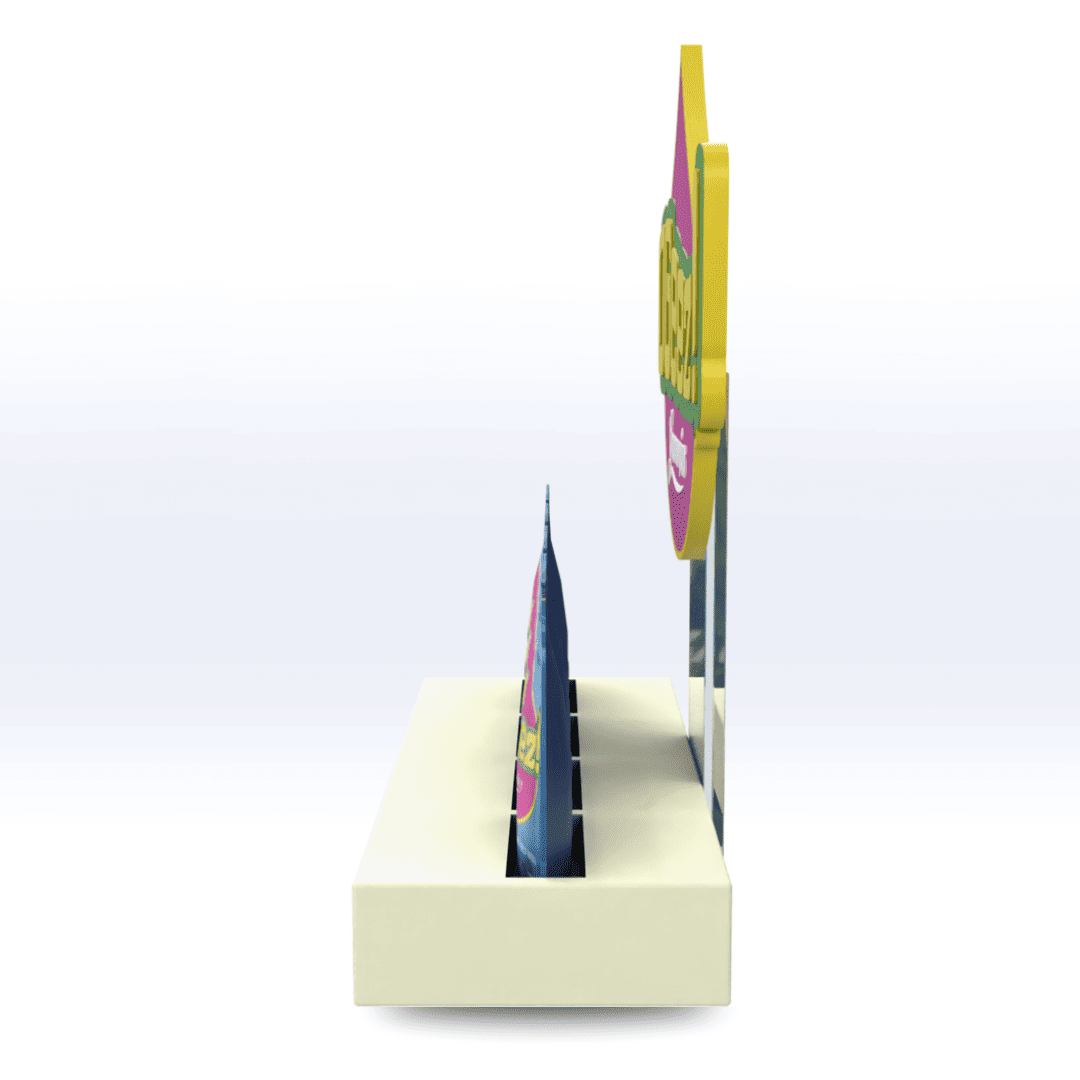 The 2-In-1 Displays unique ability to separate allows the base pedestal and backside logo to function on their own, should just a sign be needed or fit a certain spot, the 2-in-1 has you covered. Or if you have the shelf space and looking to elevate your brand, showcasing products on the 2-in-1 acrylic base maintain a clean and professional appearance.