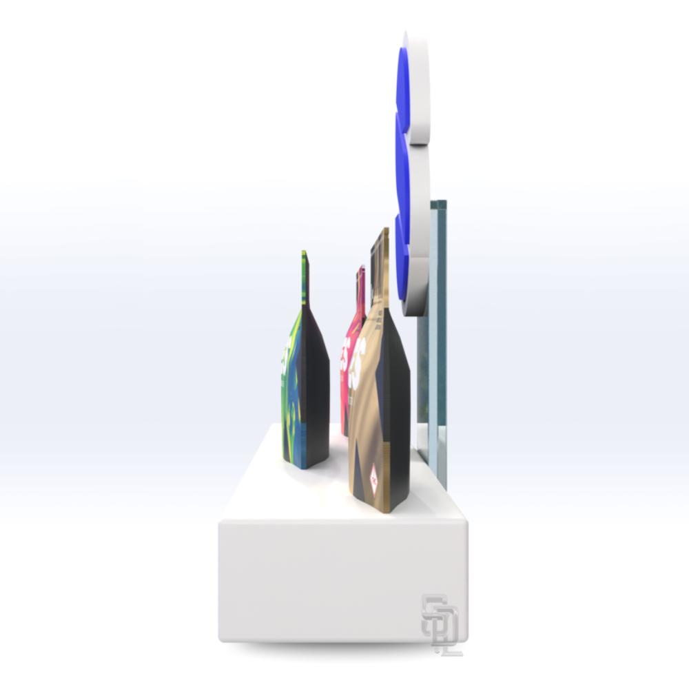 The 2-In-1 Displays unique ability to separate allows the base pedestal and backside logo to function on their own, should just a sign be needed or fit a certain spot, the 2-in-1 has you covered. Or if you have the shelf space and looking to elevate your brand, showcasing products on the 2-in-1 acrylic base maintain a clean and professional appearance.