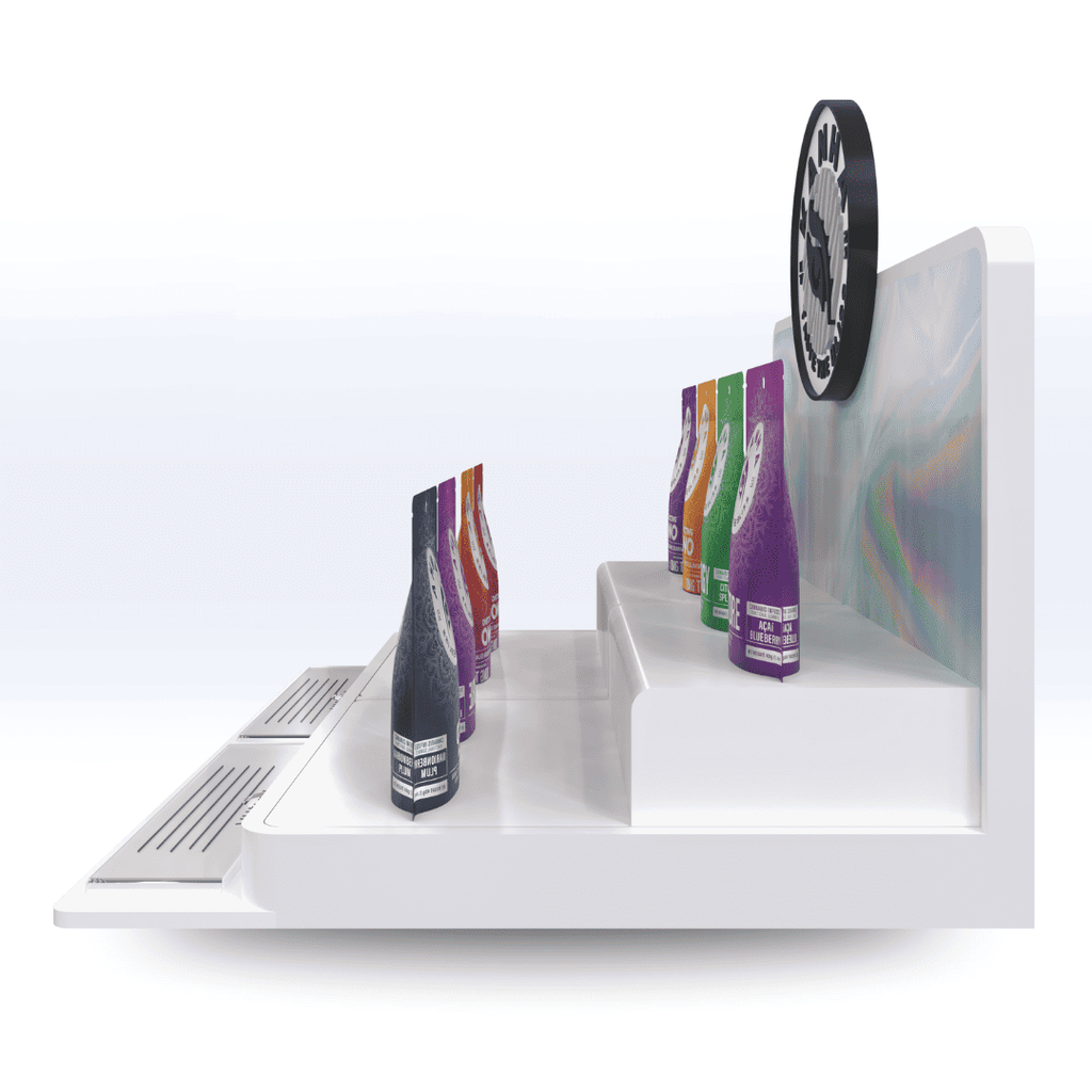 Crafted from durable 5mm thick satin polished acrylic. With three interchangeable product tray components to choose from, this display is fully customizable to suit your needs. Select from our range of 8 product trays and display your brand logo on the backside panel.