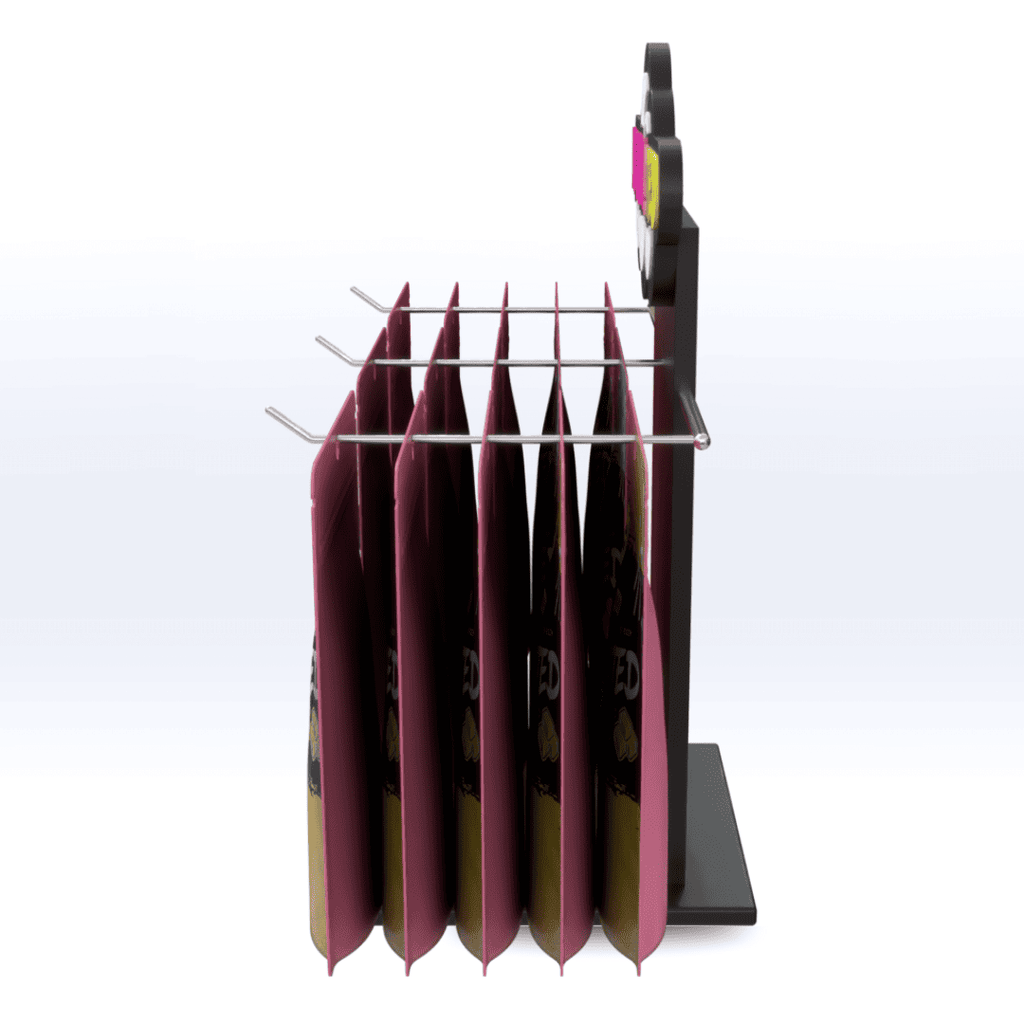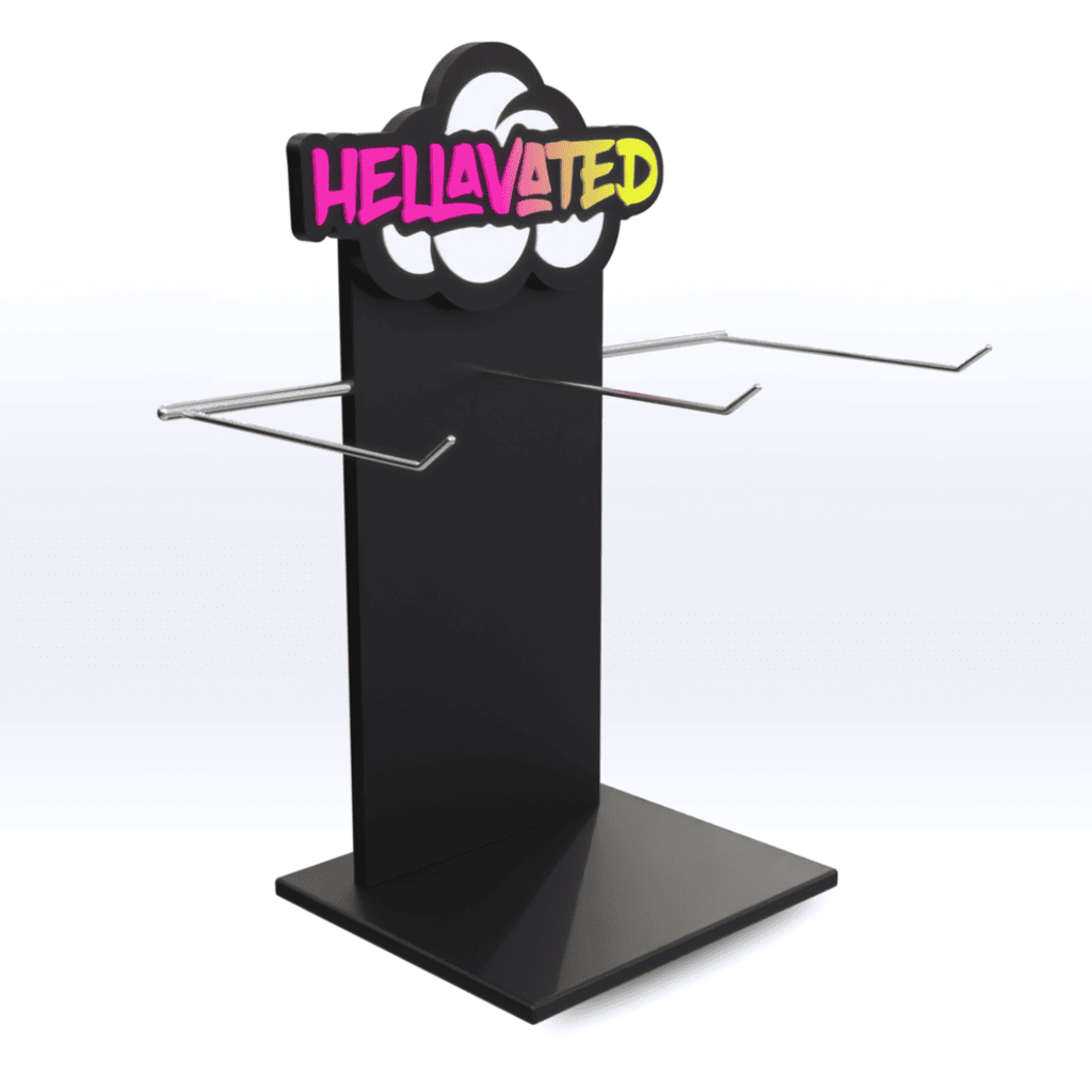 One of our newest retail display creations, meet the Acrylic 3-Hook POP Display made from premium 5mm acrylic, and custom made to order. This acrylic pop display is an eyecatcher and features space for your brands logo, slogan, colors, and packaging compatible with a standard wire hook display.
