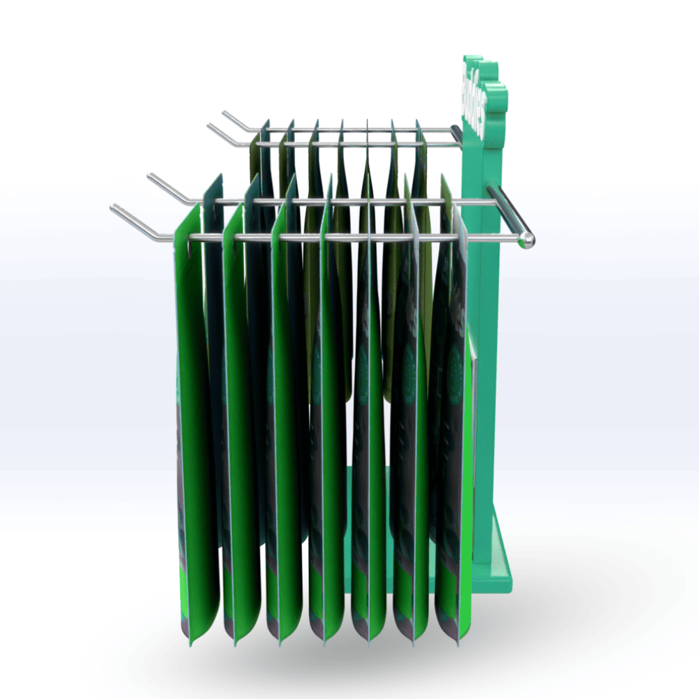 One of our newest retail display creations, meet the Acrylic 4-Hook POP Display made from premium 5mm acrylic, and custom made to order. This acrylic pop display is an eyecatcher and features space for your brands logo, slogan, colors, and packaging compatible with a standard wire hook display.